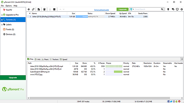 μTorrent (также uTorrent и microTorrent, произносится как «ю-то́ррент»[4], «мю-то́ррент» / «ми-то́ррент»[5][4] или «микрото́ррент»[6][4]) — BitTorrent-клиент для Windows, macOS, Linux (веб-интерфейс) и Android, написанный на C++ и отличающийся небольшим размером и высокой скоростью работы при достаточно большой функциональности. В январе 2011 года количество пользователей в месяц достигло отметки в 100 миллионов[7].