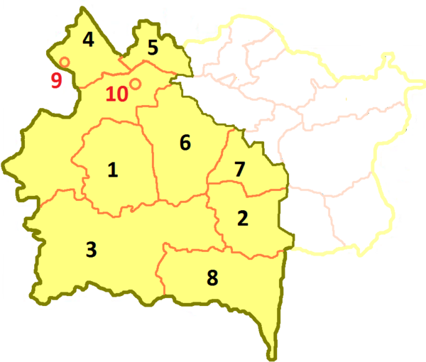 В результате административных преобразований Абайская область состоит из 8 районов и 2 городов областного подчинения (городские акиматы)[1]: