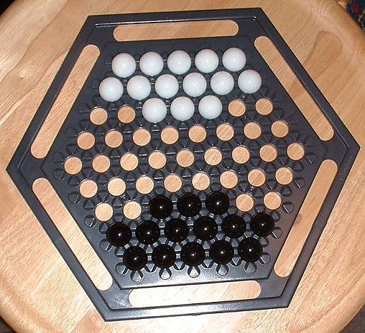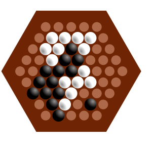 Игровое поле состоит из 61 лунки, расположенных в виде правильного шестиугольника со стороной 5 лунок. Играют шариками чёрного и белого цветов, соответствующими по размеру лункам игрового поля. Шары устанавливаются в лунки и передвигаются по линиям игрового поля. Линия — это ряд попарно соседних лунок, расположенных на одной прямой, то есть через каждую лунку проходит три линии — одна горизонтальная и две диагональных.