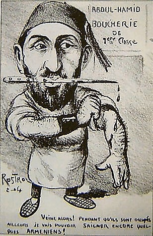 Если было плохо положение самих турок, то положение христиан, населявших Турецкую империю, было так тяжело, что восстания, бунты и мятежи не прекращались во всё царствование Абдул-Хамида. Волнения среди христиан подавлялись султаном со страшной жестокостью. Особенною жестокостью отличались погромы армян в 1894 г., когда было сожжено и разграблено около 50 тыс. домов и свыше 100 тыс. армян — мужчин, женщин, детей — было замучено, изувечено, разорено[15][16]. Из-за них султан был прозван Великим убийцей. Издавна существовавшая в Турции национальная и религиозная вражда между мусульманами и христианами при Абдул-Хамиде достигла высшего напряжения.