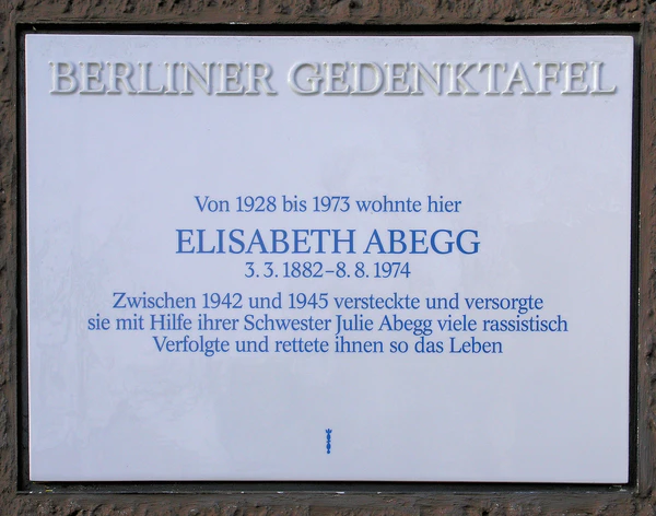 - Elisabeth Abegg (1882—1974) (нем.). www.gedenkstaette-stille-helden.de. — Gedenkstätte Stille Helden. Дата обращения: 15 мая 2019. Архивировано 30 октября 2018 года.