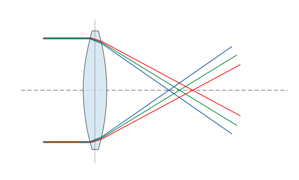 Хроматические аберрации обусловлены дисперсией оптических сред, из которых образована оптическая система — то есть зависимостью показателя преломления оптических материалов, из которых изготовлены элементы оптической системы, от длины проходящей световой волны.