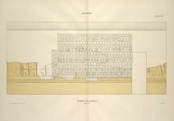 Таблица Абидоса помогла Жану-Франсуа Шампольону разместить фараонов XVIII династии и позже служила пособием Карлу Лепсиусу для отождествления царей с именами Аменемхет и Сенусерт с царями XII династии Манефона. Таблица Абидоса была основательно разобрана египтологами Шарлем Теодюлем Девериа (фр. Charles-Théodule Deveria) и Эммануэлем Руже (фр. Olivier-Charles-Camille-Emmanuel de Rougé).