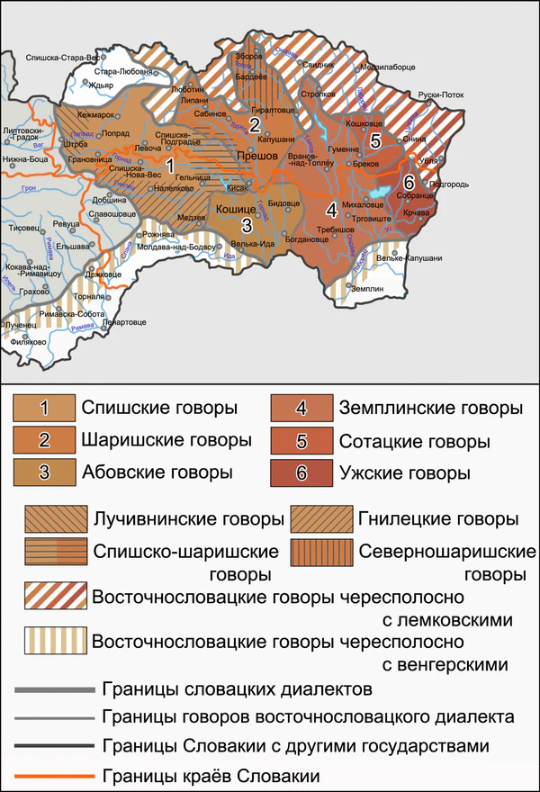 - Форма f Košici, противопоставленная форме f Košicoch, распространённой в остальных говорах восточной Словакии.