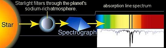 Астрономическая спектроскопия — особенно важный вид дистанционного спектрального зондирования. В этом случае интересующие объекты и образцы настолько удалены от Земли, что электромагнитное излучение является единственным доступным средством их измерения. Астрономические спектры содержат информацию о спектрах как поглощения, так и излучения. Спектроскопия поглощения была особенно важна для понимания межзвёздных облаков и определения того, что некоторые из них содержат молекулы. Абсорбционная спектроскопия также используется при изучении внесолнечных планет. Обнаружение внесолнечных планет методом транзита также измеряет их спектр поглощения и позволяет определить состав атмосферы планеты[9], температуру, давление и масштаб затухания по высоте, что позволяет также определять массу планеты[10].