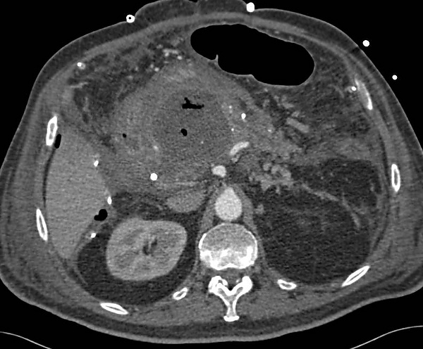 Абсцесс поджелудочной железы определяется как ограниченное внутрибрюшное скопление гноя, обычно расположенное вблизи поджелудочной железы и содержащее некротизированную ткань поджелудочной железы. Считается, что инфицирование происходит вследствие транслокации бактерий из толстой кишки. Как правило, он развивается у пациентов с инфицированными панкреатическими псевдокистами[1].