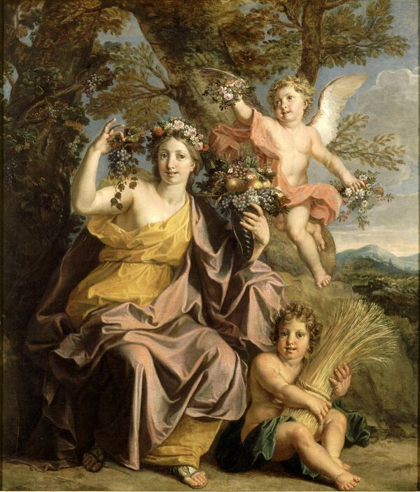 Нимфы плодами мой рог и цветами душистыми полнят,