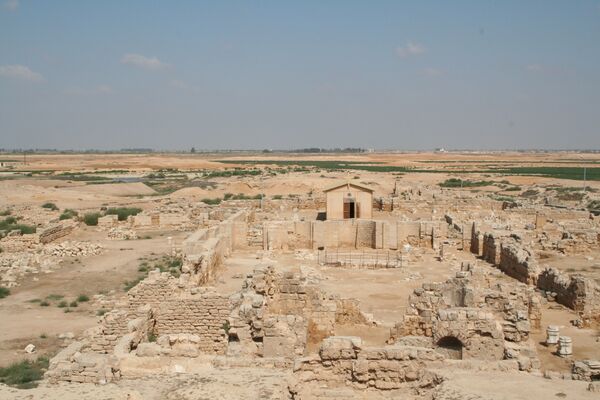 Впервые на этом месте раскопки производились в период с 1905 до 1907 года, в ходе которых были обнаружены довольно крупная базилика, церковь, расположенная поблизости и, видимо, предназначавшаяся для захоронения останков святых, а также римские бани. Позже, к концу 1998 года завершились более длительные раскопки, проводимые при поддержке ИИ. Во время самых последних раскопок была обнаружена большая общая спальня для несостоятельных паломников с отдельным крылом для мужчин, женщин и детей. А комплекс сооружений к югу от знаменитой базилики был, вероятно, местом проживания аббатов (или hegoumenos). Согласно проведённым исследованиям, можно предположить, что известный ксенодохий, постоялый двор для паломников, был изначально кладбищем. Баптистерий, расположенный недалеко от места заложения первой церкви, пережил, по крайней мере, три реконструкции. Также был найден комплекс сооружений для изготовления вин, включая подземные хранилища, который датируется VI—VII вв. н. э.