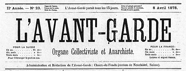Последователи Бакунина начали применять название журнала к искусству, а в 1885 году Теодор Дюре перенёс термин авангард из области политики в область художественной критики. Интересно, что ещё раньше, в 1871 году, семнадцатилетний французский поэт Артюр Рембо в частной переписке, ставшей публичной значительно позже, писал, что поэзия должна создать совершенно новый язык, объединяющий задачи политического и художественного авангарда; именно это позволит ей быть впереди[5].