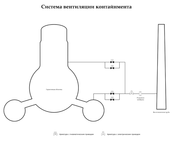 После того как в девять утра TEPCO получила отчёт об эвакуации населения из ближайших населённых пунктов, первая группа сотрудников АЭС, освещая свой путь фонарями, поднялась на второй этаж реакторного здания и к 09:15 вручную открыла один из клапанов системы вентиляции. Вторая группа попыталась добраться до другого клапана, расположенного в подвальном помещении, однако из-за высокого уровня радиации им пришлось развернуться обратно на полпути из опасения превысить максимальную дозу в 100 мЗв[52]. Не оставалось ничего иного, как найти способ подать сжатый воздух к пневматическому приводу оставшегося клапана через штатную систему. Только к 12:30 удалось найти необходимый компрессор у одной из подрядных организаций на площадке АЭС. В 14:00 компрессор был подключён к системе сжатого воздуха, а с помощью мобильного генератора был запитан управляющий соленоид на пневмоприводе клапана вентиляции. Быстрое снижение давления в гермооболочке подтвердило успех операции[53].