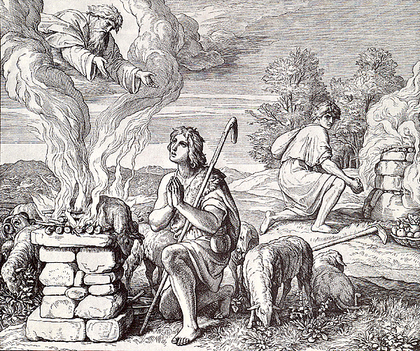 Конфликт начался с жертвоприношения Богу, произведённого обоими братьями (это первые жертвоприношения, о которых упоминается в Библии). Авель, как пастырь овец, принёс в жертву первородных своего стада, а Каин, как земледелец — плоды земли (Быт. 4:3—4).
