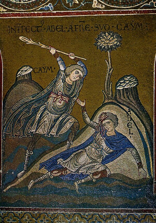 О причинах убийства Каином Авеля существует несколько толкований. По одному из них, один из братьев сказал: «Земля, на которой ты стоишь, — моя», а второй возразил: «То, что ты одет, — моё». Один сказал: «Разденься», другой возразил: «Улетай от земли». По другому толкованию, один сказал: «Храм должен быть построен в моей области», а другой утверждал: «Он должен быть построен в моей области». По третьему толкованию, ещё один близнец родился с Авелем, и каждый из братьев потребовал её. Один заявил: "Она будет у меня, потому что я первенец; в то время как другой утверждал: «Я должен иметь её, потому что она родилась со мной»[11]. Авель был сильнее Каина, так что в начале борьбы Каин очутился под Авелем. Каин сказал: «Ведь нас только двое во всем мире, что скажешь ты отцу в утешение?» Авель исполнился жалости к брату и отпустил его, но Каин вероломно убил его[12].