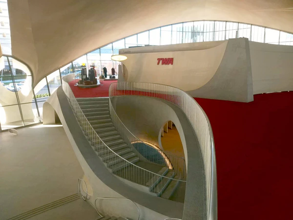 Нынешний терминал JetBlue и здание отеля TWA расположены к востоку от первоначального здания. Входной зал терминала состоит из двух рукавов, которые в форме полумесяца огибают здание авиационного центра TWA[13][14].