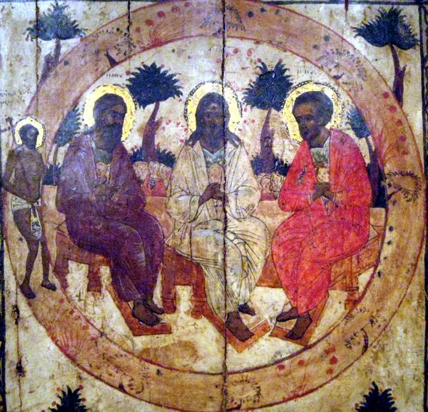Явление Аврааму Бога в образе трёх путников (Быт. 18) рассматривается Православной церковью как символ троичного Божества, что и отразилось на иконах Троицы. Этот иконописный сюжет получил название «Гостеприимство Авраама» (традиционно на иконе изображается сам Авраам, закалывающий тельца; иногда может присутствовать изображение его жены, слушающей речь ангелов).