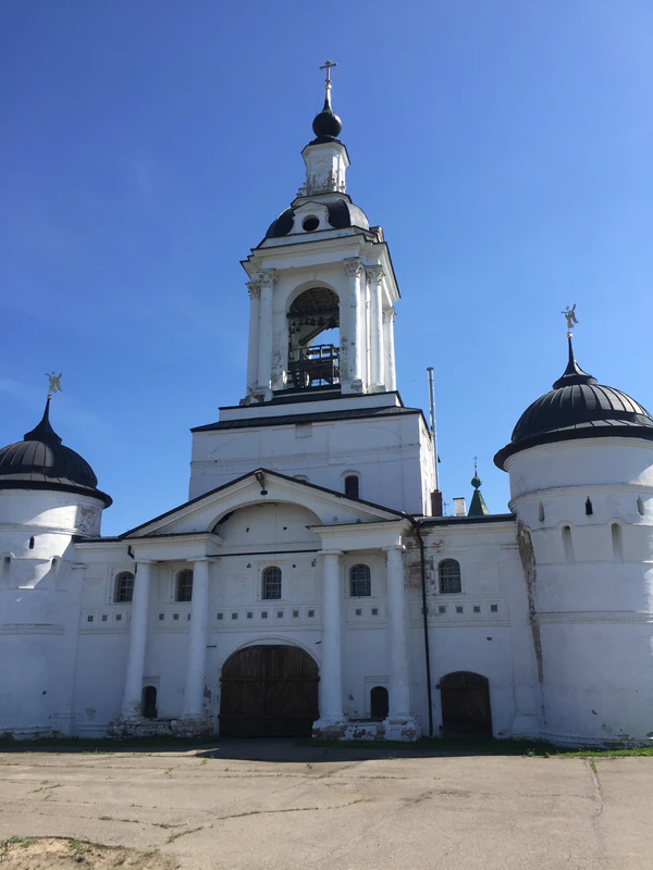 В Смутное время монастырь был разграблен поляками. В середине XVII века при архимандрите Ионе возведены каменные Введенская (1650) и надвратная Никольская (конец XVII века) церкви.