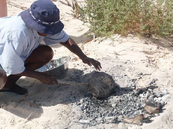 Кухня австралийских аборигенов (бушфуд, буш таккер) основана на употреблении в пищу продуктов исключительно австралийского происхождения[3][4]. Национальными мясными продуктами считаются кенгурятина, мясо опоссума, валлаби, эму и крокодила[5]. Сейчас кенгурятину можно найти практически во всех продуктовых магазинах (также за пределами Австралии) по цене, сравнимой с ценой говядины. Также в пищу употребляют мясо более экзотичных животных и личинки насекомых[6]. В регионах, близких к побережью, распространены рыба и морепродукты.