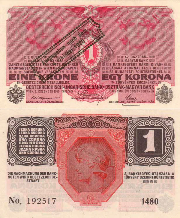 После распада Австро-Венгрии Австро-Венгерский банк, находившийся в совместном управлении Австрии и Венгрии, продолжал эмиссию австро-венгерской кроны, остававшейся общей валютой Австрии, Венгрии, Чехословакии, а также обращавшейся на территориях, вошедших в состав других стран.