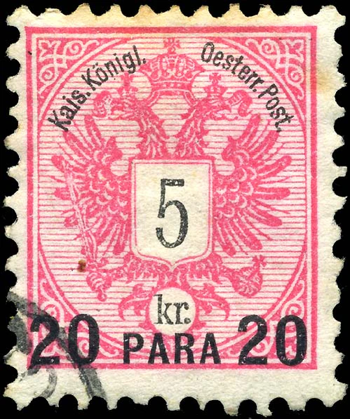 Начиная с 1863 года использовались почтовые марки Ломбардо-Венеции, но после утраты этих территорий в 1867 году Австрии пришлось выпустить специальные почтовые марки. Внешне они не отличались от марок Австрии того периода, но их номиналы были обозначены в сольдо и флоринах. В 1886 году номиналы были изменены на пара и пиастры в соответствии с турецкими деньгами, вначале путём надпечатки нового номинала на имеющихся марках почтовых отделений, а затем на обычных австрийских почтовых марках[1].
