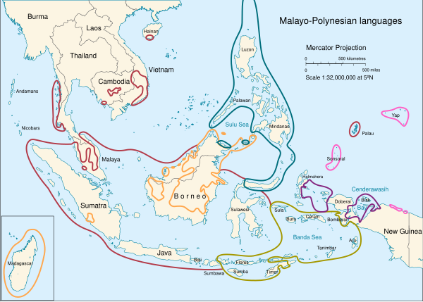 Языки северных Молуккских островов, побережья Новой Гвинеи и всей Океании составляют восточно-малайско-полинезийскую зону, включающую