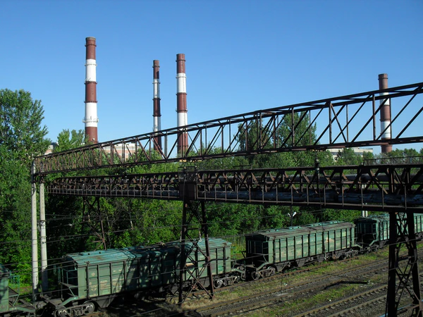 На станции имеется 4 дымовые трубы одной высоты (120 м), но разных диаметров, причём две из них одинакового диаметра.