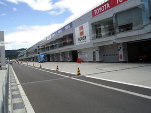 В обход стартовой черты проложена дорожка с гаражными боксами — пит-лейн. Пит-лейн от трассы отделяет бетонная стена (пит-уолл). На этой стене часто располагаются «мозговые центры» команд, с пит-уолл дают гонщикам сигналы табличками.