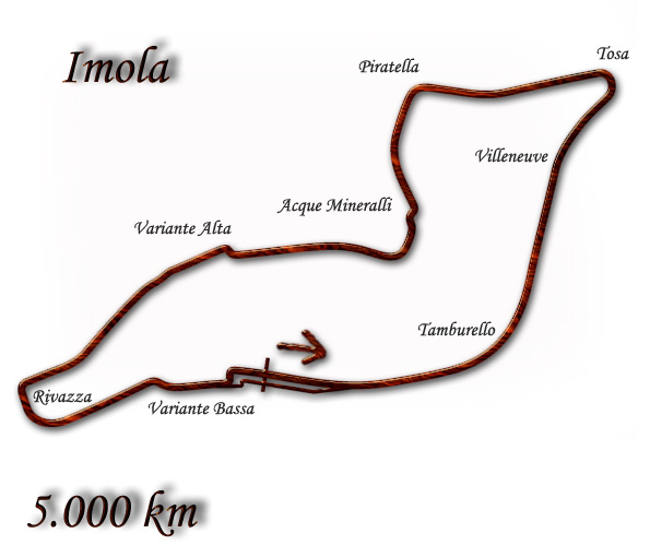 Построенная в 1950 году, Имола популярна среди пилотов из-за своей быстрой, плавной конфигурации. В 1973 и 1974 годах были добавлены две шиканы для того, чтобы замедлить машины. Третья шикана была добавлена в 1981 году. Однако трасса оставалась постоянным предметом заботы о безопасности, в основном касательно проходимого на предельной скорости поворота «Tamburello», который был очень ухабистым и имел опасно малое пространство между трассой и бетонной стеной, защищающей ручей, протекающий позади неё. В 1987 г. во время практики произошёл несчастный случай с Нельсоном Пике, который из-за травмы пропустил гонку. В Гран-при Сан-Марино 1989 года Герхард Бергер разбил свою Феррари в «Тамбурелло» из-за отказа переднего антикрыла. Машина загорелась после тяжёлого столкновения, которое фактически раскололо монокок, но, благодаря быстрой работе пожарных и медиков, Бергер избежал серьёзных травм.