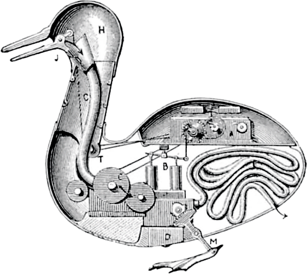 Рене Декарт в XVII веке предлагал рассматривать животных как сложные машины, где органы соответствуют шестерням и рычагам[43]. Во Франции того же времени появились первые механические игрушки — прототипы машин промышленной революции.