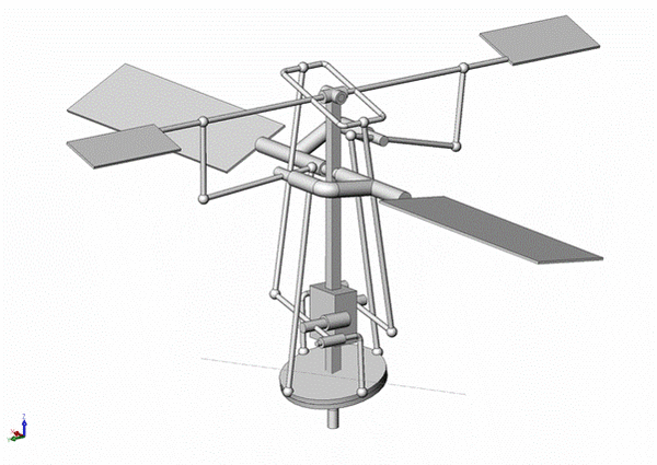 Общий шаг несущего винта обычно регулируется через перемещение внутреннего кольца[2] вдоль вала. Таким образом, тяги смещают шарниры крепления с лопастями и меняют угол установки каждой лопасти на одинаковое[3] значение.