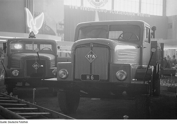 В начале 50-х стартовало производство так необходимых новой Германии автобусов. Причём, немецкие автомобилестроители пошли по пути своих довоенных коллег выпуская капотные двухэтажные городские автобусы для Восточного Берлина. Их производством занималось вагоностроительное предприятие в городе Баутцен, а узлы и агрегаты поставлял завод Horch. С 1952 года для вновь созданной Военизированной Народной Полиции (будущей Народной Национальной армии) завод Horch начал выпуск полноприводного армейского грузовика G5, также джипа P2M. Таким образом уже к 1953 году ГДР выпускала легковые и грузовые автомобили, автобусы, тракторы, прицепы и полуприцепы, а также осваивало спецтехнику на их базе. Вплоть до 1954 года ГДР в качестве выплат по репарациям поставляла в СССР некоторые виды своих автомобилей. В основном это были легковые автомобили BMW/EMW, фургоны Framo, мотоциклы и велосипеды, а также машинокомплекты автокранов Bleichert, которые устанавливались в СССР на отечественные грузовые шасси. С 50-х годов начался экспорт автомобильной продукции ГДР за пределы страны. Импортёрами были не только социалистические страны, но и Дания, Финляндия, Швеция и другие. За рубежом наиболее ценились купе и кабриолеты EMW 327. Начало 50-х связано с некоторым скандалом касающимся прав на автомобильные марки. Дело в том, что марка BMW принадлежала своим владельцам располагавшимся в штаб-квартире в Баварии. В Айзенахе же был лишь один из заводов фирмы, хотя и довольно крупный. Баварские владельцы оспорили права на марку в международном суде, поэтому автомобили выпускаемые в ГДРовском Айзенахе в 1951 году пришлось переименовать из BMW в EMW. По такой же причине автомобили марки DKW выпускаемые в ГДР носили общую марку IFA.