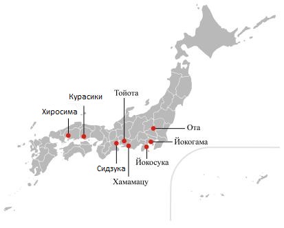 Ведущими японскими автомобильными компаниями, работающими на международных рынках, являются «Мазда» (Хиросима), «Хонда» (Токио), «Тойота», «Ниссан» (Йокогама), «Судзуки» (Хамамацу), «Мицубиси» (Хамамацу) и другие.