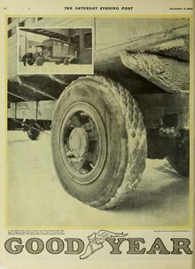 Грузовые автомобили начала века обычно имели сплошные (массивные) шины без воздушной камеры, либо шины типа „эластик“, имеющие пустоты в массиве. Скорость на таких шинах была ограничена примерно 30 км/ч — после этого начинался перегрев резиновой ленты и её расслоение. С 1910-х годов появляются первые пневматические шины для лёгких грузовых автомобилей с шириной профиля до 6», так называемые «пневматики-гиганты» (грузовики с грузоподъёмностью более 1,5 тонн продолжают оснащаться сплошными шинами). Это имело огромное значение, так как позволило значительно повысить скорость и рентабельность перевозки грузов. Из преимущественно внутригородского развозного транспорта, медлительного и тряского, грузовик стал превращаться в достойного конкурента для железнодорожных перевозок. Благодаря применению пневматических шин на автобусах появилась возможность налаживания междугородного автобусного сообщения.[6][8]