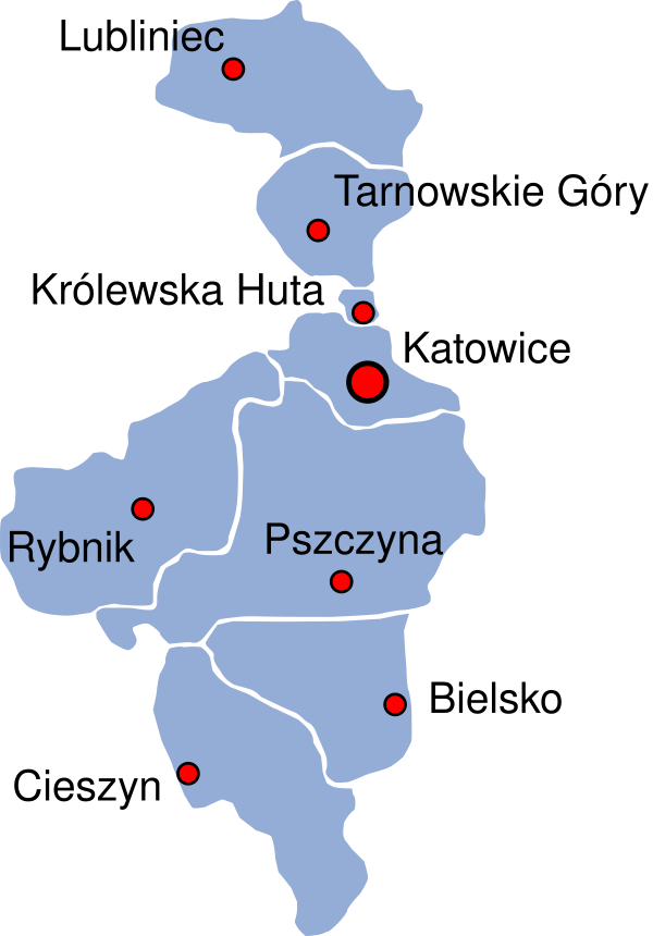Городские поветы — Катовице, Бельско, Крулевска-Хута.