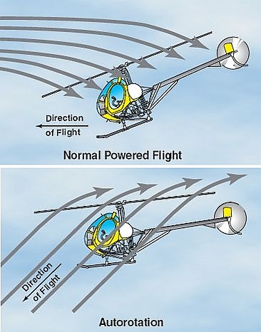 Для более безопасного приземления вертолёт должен иметь или достаточную высоту или достаточную горизонтальную скорость. Высота необходима для раскрутки несущего винта во время снижения. Горизонтальная скорость используется для быстрого перевода кинетической энергии движения вертолёта в энергию вращения винта. При отказе двигателя на малой высоте приземление может закончиться катастрофой. Военные вертолёты работают на малой высоте, поэтому для спасения экипажа иногда устанавливают катапультируемые кресла и предусматривают отстрел лопастей несущего винта перед катапультированием.