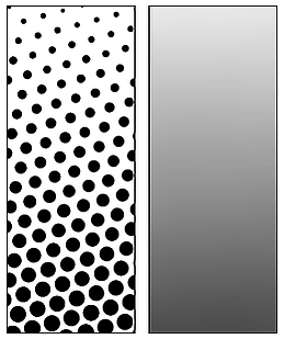 Размеры растровых элементов выбираются такими, чтобы при визуальном восприятии изображения в нормальных условиях они сливались в сплошной тон[1]. Растр может быть как линейчатым, так и точечным. В наиболее светлых местах изображения точки имеют наименьший диаметр при максимальных пробелах, и постепенно увеличиваются с заполнением белых промежутков по мере усиления тона.
