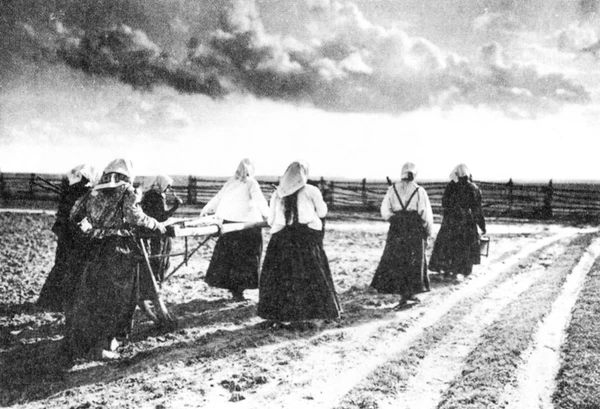 В этот день[11] (иногда на Власия) по случаю падежа скота или для предотвращения его совершали обряд опахивания для отгона Коровьей смерти. Для этого выбиралась «повещалка», которая повещала по всем домам: «Пора унять лихость коровью!». Женщины омывали руки водой и утирали их рушником, который носила повещалка. Затем повещалка приказывала мужскому полу «не выходить из избы ради беды великия». Ночью повещалка с воплем: «Ай! Ай!» била в сковороду и выходила из села. За ней шли женщины с ухватами, помелками, серпами и дубинами. Повещалка, сбросивала с себя рубаху, произносила с неистовством клятву на Коровью смерть. Повещалке (или вдове) одевали хомут, подвозили соху и запрягали. Затем, с зажжёнными лучинами трижды опахивали селение «межеводной» бороздой. Во время опахивания в южной части Руси выкрикивали: «Смерть, смерь коровья — не губи нашу скотину; мы зароем тебя с кошкой, собакой и кочетом в землю!» Женщины следуют за повещалкой на помелах в одних рубашках с распущенными волосами[12].