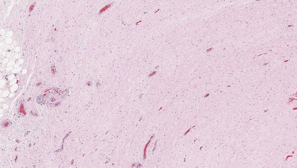 Поверхностная ангиомиксома чаще локализуется в экстрагенитальных областях, таких как голова и шея, но может поражать и вульвовагинальную область. Эта мезенхимальная опухоль возникает в дерме или подкожной клетчатке и имеет дольчатую или мультинодулярную структуру. Гистологически опухоль миксоидная и сосудистая, но, в отличие от АА, не содержит крупных сосудов[2].