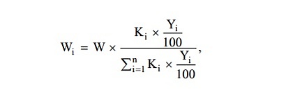 При этом W — общий объём бюджетных ассигнований на программу; Ki — планируемое количество грантополучателей в i-м субъекте РФ; Yi — предельный уровень софинансирования расходного обязательства i-го субъекта РФ из федерального бюджета; n - количество субъектов РФ, участвующих в грантовой программе[5].