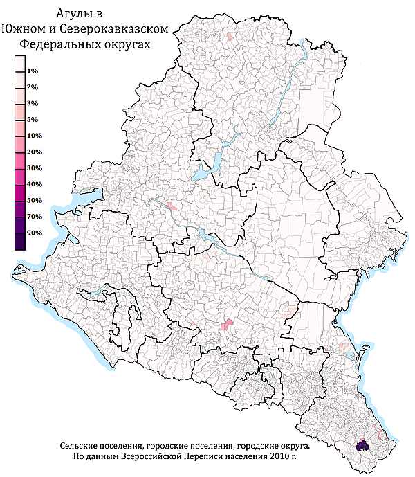 Агу́лы (самоназвание: агул. агъулар — мн. число, агъул, агъул-шуй — ед. число)[22] — один из дагестанских народов лезгинской группы народов[23], один из коренных народов Кавказа, проживающий в центральной части юго-востока Дагестана (Агульский, Курахский, Табасаранский и Дербентский районы). Верующие агулы — мусульмане-сунниты (шафиитский мазхаб).