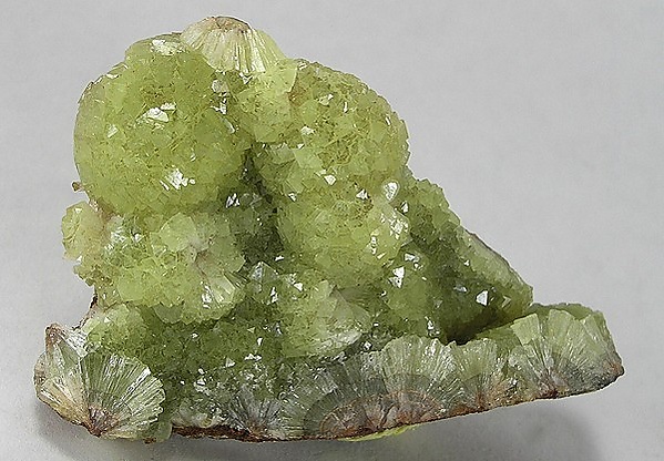 Выделяется преимущественно в виде тонких корок или друз. Реже встречаются призматические кристаллы, иногда образующие веерные сростки. Как правило, адамит нарастает на гидроокислы железа, в частности лимонит.