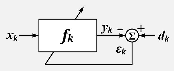 Существует два входных сигнала адаптивного фильтра: dk и xk, которые иногда называются главным входом и контрольной входной величиной соответственно[3].
