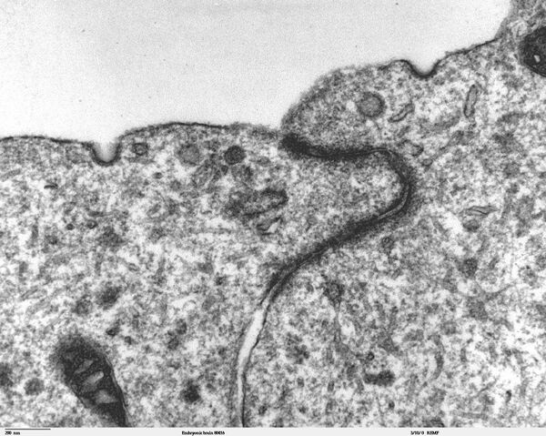 Морфологически адгезивные контакты являются относительно простыми, в отличие от десмосом, плотных и щелевых контактов, они не имеют высокоспециализированных ультраструктур, кроме скопления актиновых филаментов. От других типов соединений клеток они отличаются относительной гибкостью и изменчивостью[4]. 9.