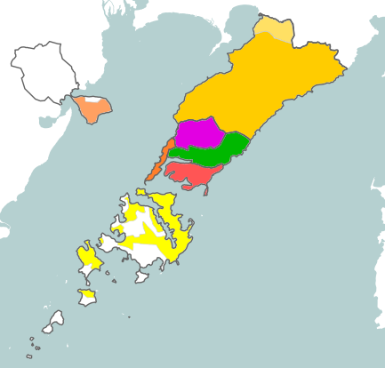 (4) - посёлок Трудовое (подчинён Советскому району) (5) - село Береговое (подчинено Фрунзенскому району) -подчинённые управлению островных территорий администрации г. Владивостока: (6) посёлки Русский, Попова и Рейнеке.