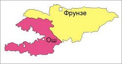 | Ошская | Ала-Букинский, Алайский, Араванский, Базар-Курганский, Баткантский, Джанги-Джольский, Кара-Суйский, Ленинский, Ляйлякский, Наукатский, Ошский, Советский, Сузакский, Токтогульский, Узгенский, Фрунзенский, г. Джалал-Абад, г. Кизыл-Кия, г. Кок-Янгак, г. Майли-Сай, г. Ош, г. Сулюкта, г. Таш-Кумыр |
