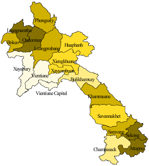 | 17 | Удомсай | ອຸດົມໄຊ | Сай | 15 370 | 307 622 | 20,0 |