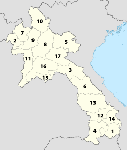 Лаос разделён на 17 провинций (ແຂວງ кхуэнг) и столичную префектуру (ນະຄອນຫຼວງ кампхэнгнакхон), включающую столичный муниципалитет (накхонлуанг). Провинции разделены на 140 районов, состоящих из 11 000 коммун.