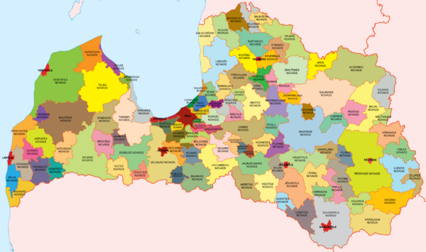 19 декабря 2008 года правительство Латвии постановило: в Латвии вместо прежних 553 самоуправлений (районов, волостей и т. д.) были созданы 109 краёв или но́вадов (латыш. novads, мн.ч.: novadi) и девять республиканских городов[3].