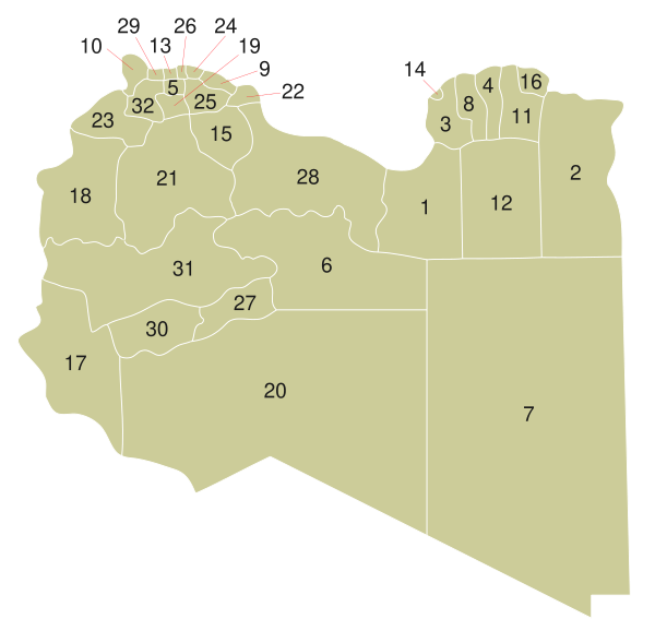 В период с 2001 по 2007 годы Ливия административно делилась на 32 муниципалитета: