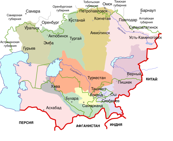 - Курган-Тюбинский вилайет — на юго-западе.