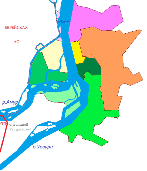 *Площадь левобережья 159 км², в том числе собственно левый берег реки Амур – 83 км² , водное зеркало реки Амур – 76 км².