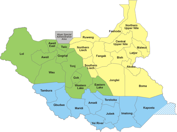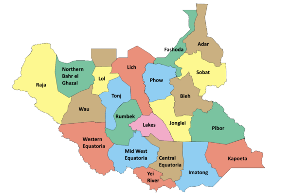 В феврале 2020 года в результате мирного соглашения, положившего конец гражданской войне, Южный Судан вернулся к делению на 10 штатов, добавив два административных района.
